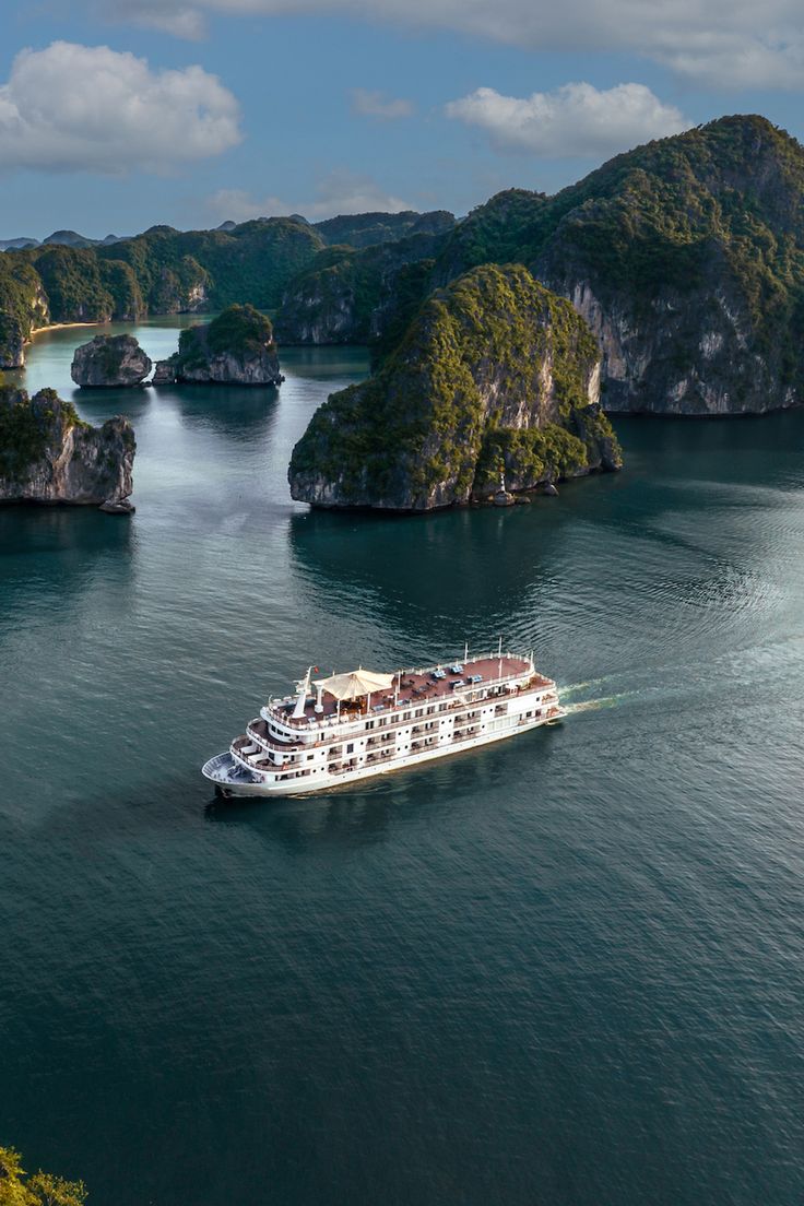 ⛰️ Ha Long Bay: Sail on an overnight or day cruise surrounded by limestone karsts, emerald waters, and hidden caves. Kayak through serene lagoons and enjoy a traditional seafood lunch onboard.